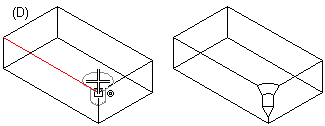 - Point in the direction of face (D) - When you move the library feature near a point in the direction of the face, the cursor will snap to the point and the feature will be set in the direction of the face.