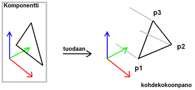 - For example, a component positioned with the constraints of the assembly. Note the turning of the SmartSnap component's (colored) coordinates.