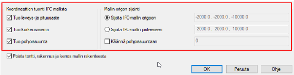 - When opening an IFC file, a dialog box opens, from which you can select location-related settings: