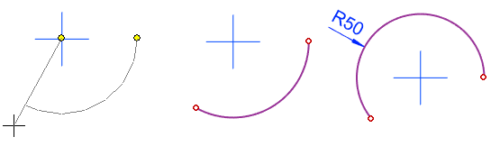 - If you click the location of the center point of the arc from the origin of the sketch, the end point of a line, or the center point of another circle, the program automatically adds a concentricity constraint to the circle with the aforementioned element.