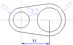 Edit the dimension constraints and add the Distance constraint between the center points of the circles. Notice the changed color of the dimensions.