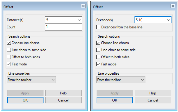 - You can enter one distance or multiple distances if you want multiple offset lines.
