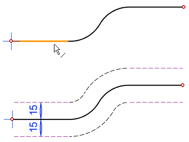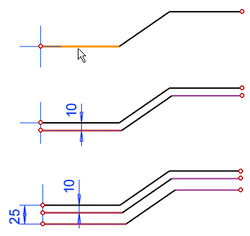 Fast mode is selected, the offset line is drawn while you click the baseline.- The side of the offset line is determined by which side of the baseline the cursor was on when you clicked it.
