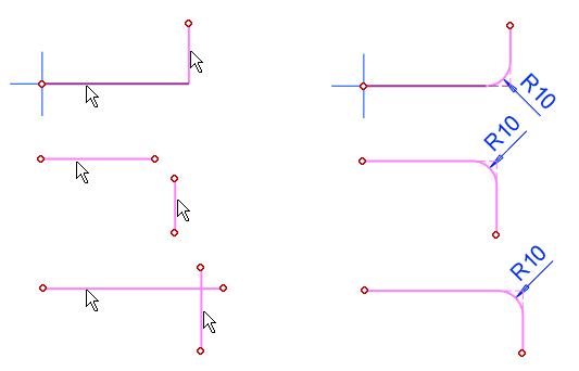 - If necessary, the program extends or cuts the lines to be rounded from their intersection and adds a rounding.