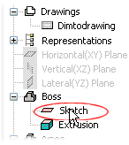 - In the feature tree of the part, double-click the Sketch the dimensions of which you wish to insert into the projection.