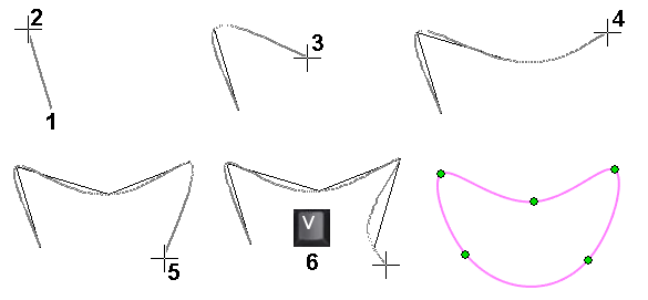- Sketch a closed spline curve by clicking points. When you confirm the point selection as completed, the program also completes the curve between the first and last point you selected.