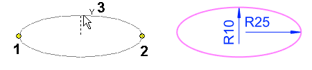- An ellipse is sketched by first clicking the main axis points and then clicking the radius point.