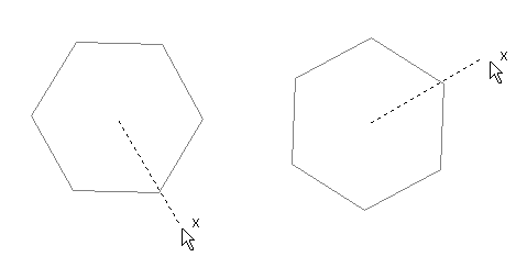 - You can sketch the polygon freely, or you can define the size of the polygon based on the size of the circle that fits inside (=width across the flat) or the size of the circle passing through the corners of the polygon.