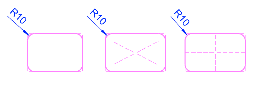 Help lines from corner to corner.- The helplines of a rounded rectangle are added from the center point of a corner to the opposite center point.