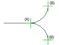 Spline - Click a point on the line, arc or circle to which you wish the added arc to be tangential (A), as the starting point of the arc.