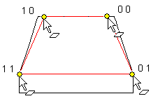 - The connection point of a sketching face added on a lofting face is defined with two relative position values. The relative position can have values 0-1. With values 0.5 0.5 the connection point will be in the middle of the face. View the relative coordinates on the selected face.