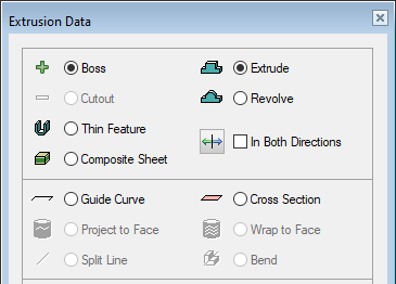 - Is the feature the first feature of the part model → You cannot create a cutout extrusion or revolving.
