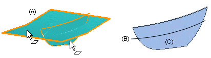 For example, you are create the new part to the assembly by copying the surface of the other part and add to the surface, which intersect. In the new part, select two faces (A) and calculation of the intersection. If you want to delete the faces selected for calculation, the intersection (B) will remain visible. The reference geometry (C) of the assembly is shown in the background.