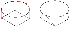 The location points are automatically placed at the corner points of a loft section face that has no tangential edge lines. On other faces the location point is positioned, for example, at the end point of a curved edge line. Only one of these location points is displayed per face. You can move a location point by selecting a new place for it.