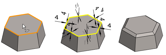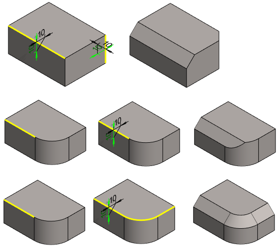 - In the function, you can also click a surface, in which case the program will suggest bevel for all its edges.