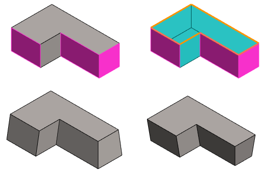- By default, draft is done for all surfaces tangential to the selected surface at once, so it is better to add drafts before adding small corner rounds.