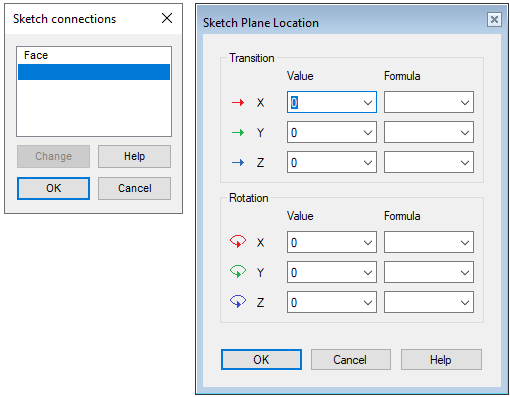 - You can relocate a sketch-based feature, i.e. constrain the sketch to another surface, for example, or enter offsets and rotations for the sketch plane.