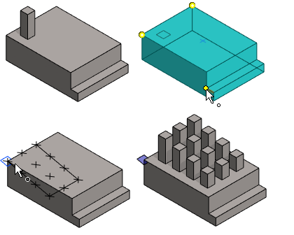 - Select the face on which to place the auxiliary geometry of the pattern and which determines the orientation of the pattern.