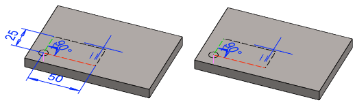 - Select two points from the auxiliary geometry, between which the constraint is added, so that the sketch does not become overdefined.