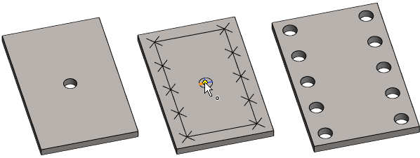 - Defines the number of features to be added to the part. The parent feature, based on which the feature pattern is created, is counted as one of the features in the feature pattern.