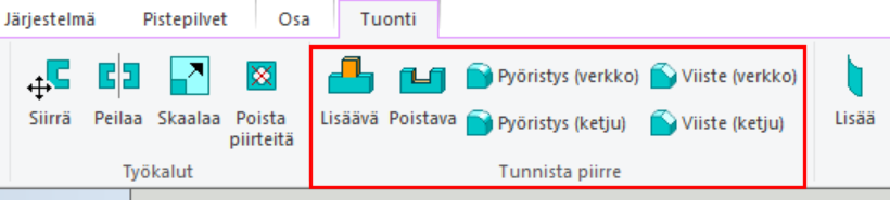 - When you select the function in the Detect feature group on the Import tab, the starting surface(s) need not be pre-selected:
