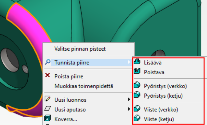 Note: Detected surfaces with the same feature remain selected and other G4 functions can be assigned to them.