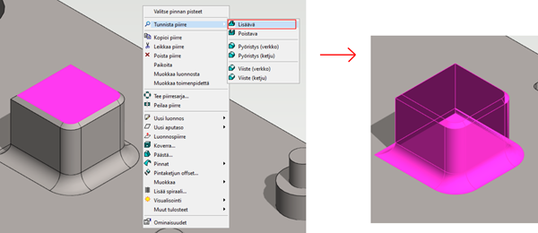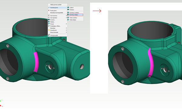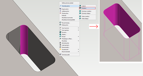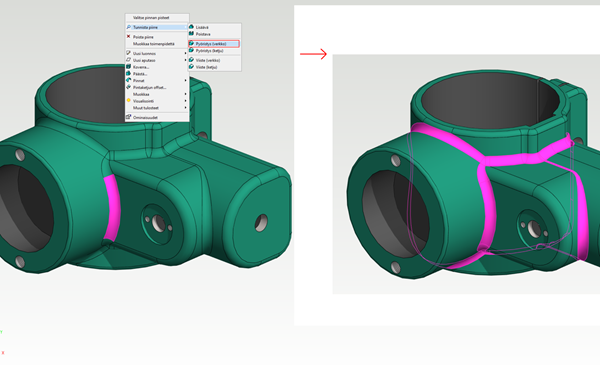 - When you select the function from the context-sensitive menu, the starting surface(s) must be pre-selected: