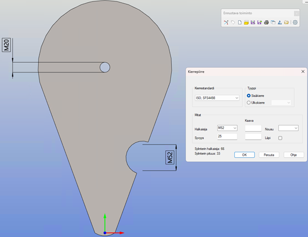 - Select the TED diameter dimension surface or line from the threaded hole.