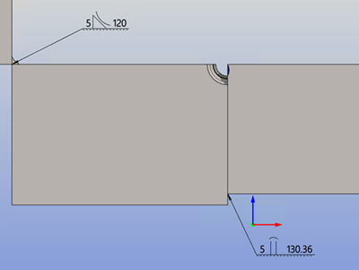 A weld mark is added by selecting a line from the model that belongs to the weld feature. The weld symbol searches its information from the history of the welded part and it is pre-filled for the symbol (either an angle weld or a butt weld).
