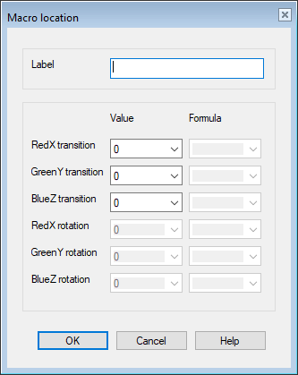 - If necessary, enter transitions for the Dimension point or transitions and rotations for the Insertion point.