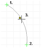 - Option 2 - Click an end point for the arc, drag the cursor over the last clicked point, and then click the middle point of the arc.