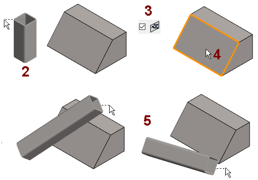 Define the sweep plane based on a planar face selected from a model. The cursor is constrained to the sweep plane. Profile sweep is performed in the sweep plane when a point has been selected as the position for the cross-section.