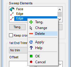 - View, change or remove the elements you have selected for sweep with the Add, Change or Delete buttons.Delete the line that controls the sweep