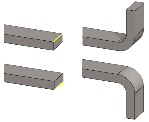 - You can bend one or more edges at once, i.e. one flange feature can contain several bends.