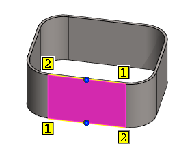 - A list of the surface and edge line, or two edge lines that model the feature.