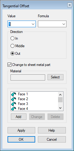 - As a type of a sheet-metal volume created from a tangential shelling will be set Sheet-Metal Part, if the check box is selected.