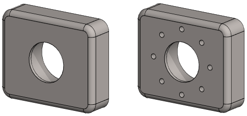 - Right: The machined part in the assembly (the part containing the machining feature is hidden).