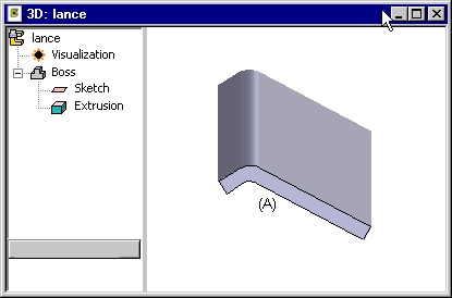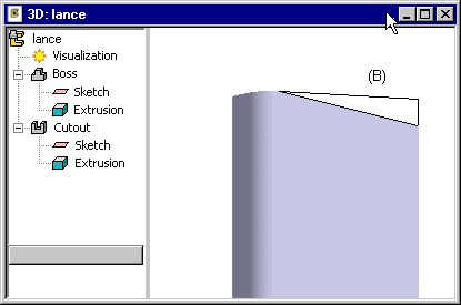 The software supplier's sheet-metal library features can be found in the Features/Sheet_metal directory of the feature library. As an example, view a combined library feature Lance1.vxm, that is both a cutout feature (A), in other words, it creates a hole in the sheet surface, and a boss feature (B), because it adds material to the sheet.