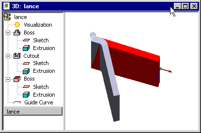 Figure 4: The model now contains a cutout feature and a boss feature that partially coincide. - Finally add a guide curve onto the machining feature to make it easy to position the handle.