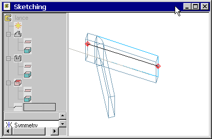 Figure 5: A guide curve makes it easier to position the handle. - Delete the old handle (that is the origin of the sketch), and define a new handle on a point on the guide curve. Note the unusual direction of the Z axis of the handle in connection with a sheet-forming library feature, Compare with a library feature that is only a cutout feature, where the direction of the Z axis of the handle coincides with the normal of the sheet face.