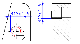 - Mitoita kierre osoittamalla reiän reunaviiva. Kierteen pituus lisätään perusmittana.