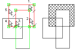 • Kuvion lisäys: osoita kuviota rajoittava viiva. Ohjelma merkitsee rajoittavan viivan. Osoita yhtenäisellä alueella olevan aukon rajoittava viiva.