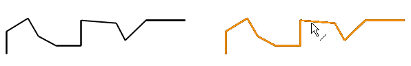 Yhtenäinen viiva ei ole valittu: Murtoviiva piirtyy erillisten viivojen ketjuna.