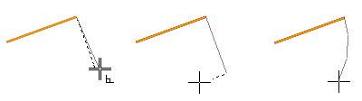 - Jos osoitat aloituspisteeksi viivan päätepisteen, viiva lähtee joko kohtisuoraan tai tangentiaalisesti suorana viivana tai kaarena.
