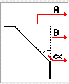 - Määrittää viisteen mitan ensimmäisen suoran viivan osuudella nurkkapisteestä lähtien. Keskusteluikkunan kuvassa on kuvattu kirjainsymbolien merkitykset. Valitse sopiva arvo luettelosta, tai kirjoita mitan arvo kenttään. Voit myös määrittää mitan arvon kaavana kenttään Kaava.