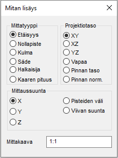 - Mittaussuuntaa tai projektiotasoa ei tällöin voida valita.
