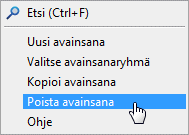 • Voit poistaa vain avainsanan, joka on lisätty asiakaskohtaisiin asetuksiin.