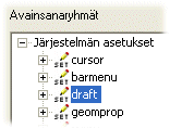 - Jos et tiedä mihin avainsanaryhmään avainsana kuuluu, voit hakea sitä koko avainsanajoukosta valitsemalla haun kohteeksi puunäkymän ylimmän tason Järjestelmän asetukset.