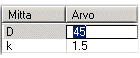 - Valitse listalta komponentin koon määrittelevä taulukkotunnus.
