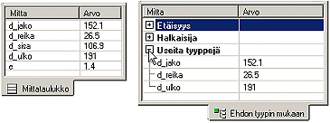 - Jos valitset uuden taulukkotunnuksen tai muutat mittaehdon arvoa, geometrian muutos